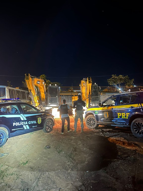Por volta das 12h30, após informação repassada pelo Centro de Comando Regional da PRF, a equipe se dirigiu a um local as margens da BR 174B, onde o rastreador de uma das escavadeiras havia apontado sua última localização. Com apoio de drone da Polícia Civil, foi possível visualizar a máquina sob uma árvore, próxima a uma área de mata. O número de série do equipamento confirmou tratar-se de um dos veículos listados no boletim.